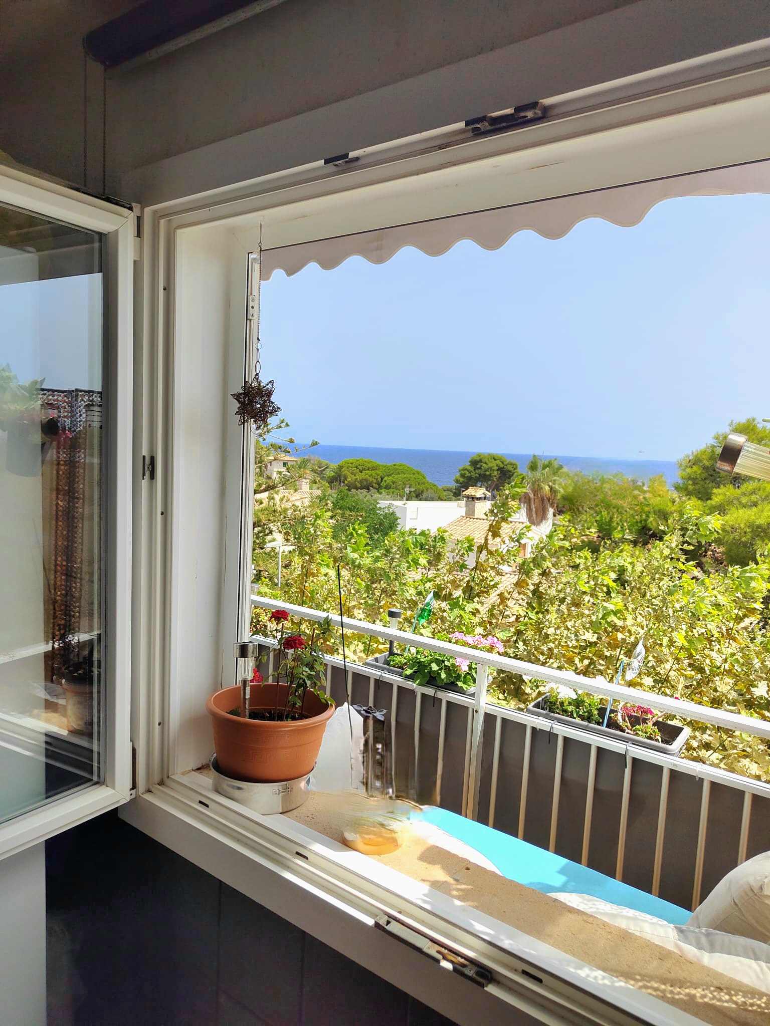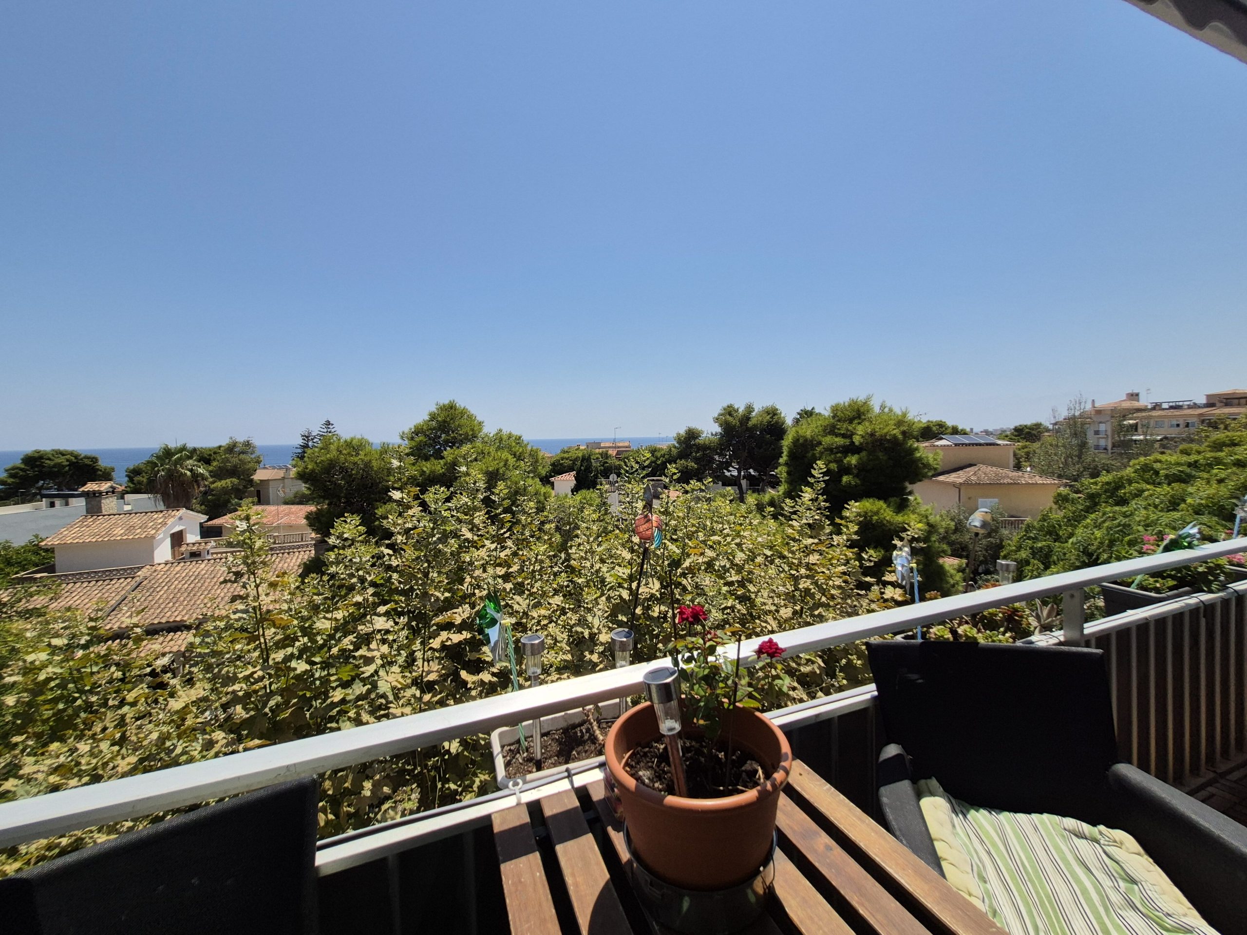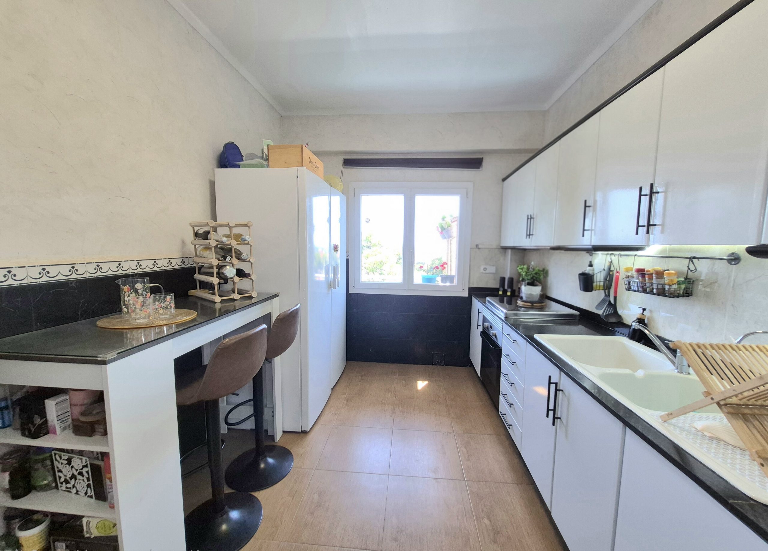 El piso cuenta con 3 habitaciones dobles, un baño muy amplio con plato de ducha de gran tamaño y jacuzzi, una espaciosa cocina independiente totalmente equipada y un salón luminoso con zona de comedor y acceso a un balcón de unos 5 metros de largo, perfecto para relajarse y disfrutar de las vistas despejadas y del mar al fondo, un privilegio que se aprecia aún más al estar allí que en cualquier fotografía. Reformado en 2006, se encuentra en muy buenas condiciones, decorado en un estilo moderno, funcional y acogedor, con bonitos detalles en las paredes, y lo mejor de todo: listo para entrar a vivir.