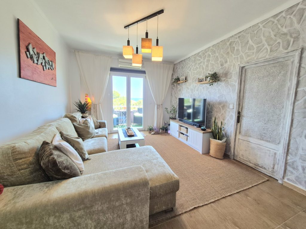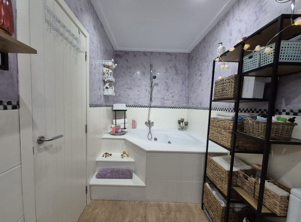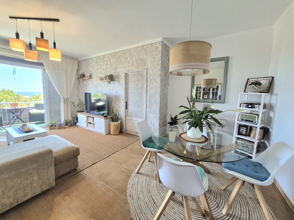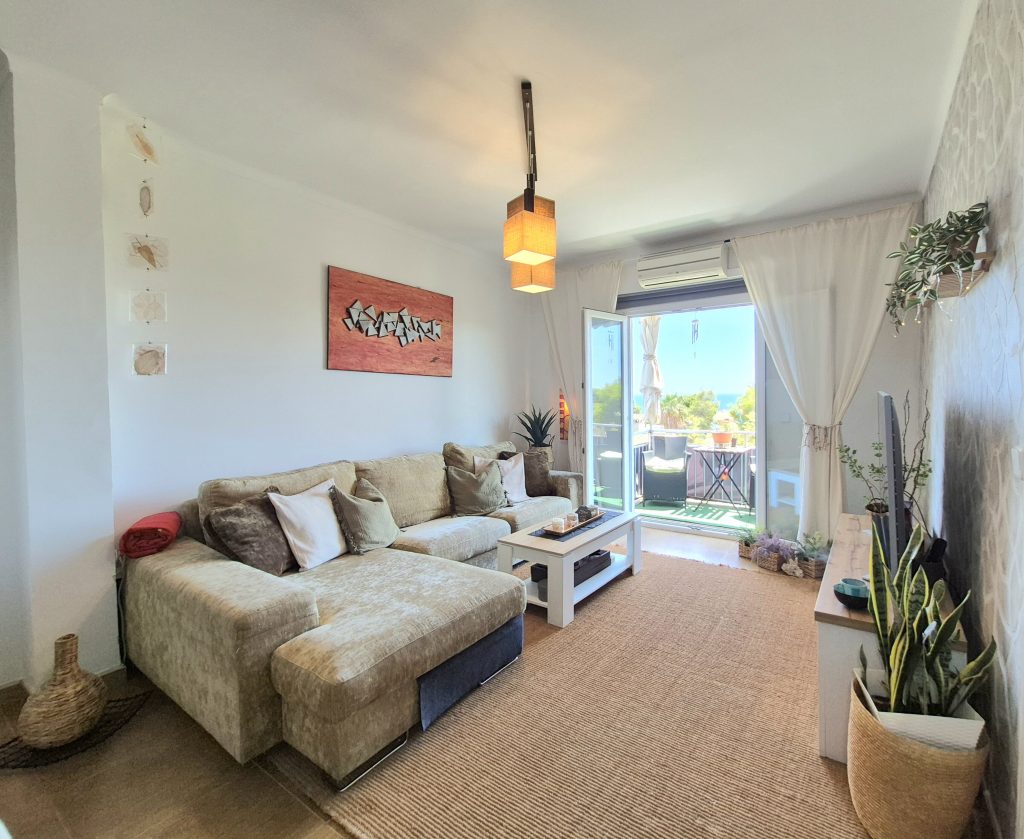 El piso cuenta con 3 habitaciones dobles, un baño muy amplio con plato de ducha de gran tamaño y jacuzzi, una espaciosa cocina independiente totalmente equipada y un salón luminoso con zona de comedor y acceso a un balcón de unos 5 metros de largo, perfecto para relajarse y disfrutar de las vistas despejadas y del mar al fondo, un privilegio que se aprecia aún más al estar allí que en cualquier fotografía. Reformado en 2006, se encuentra en muy buenas condiciones, decorado en un estilo moderno, funcional y acogedor, con bonitos detalles en las paredes, y lo mejor de todo: listo para entrar a vivir.